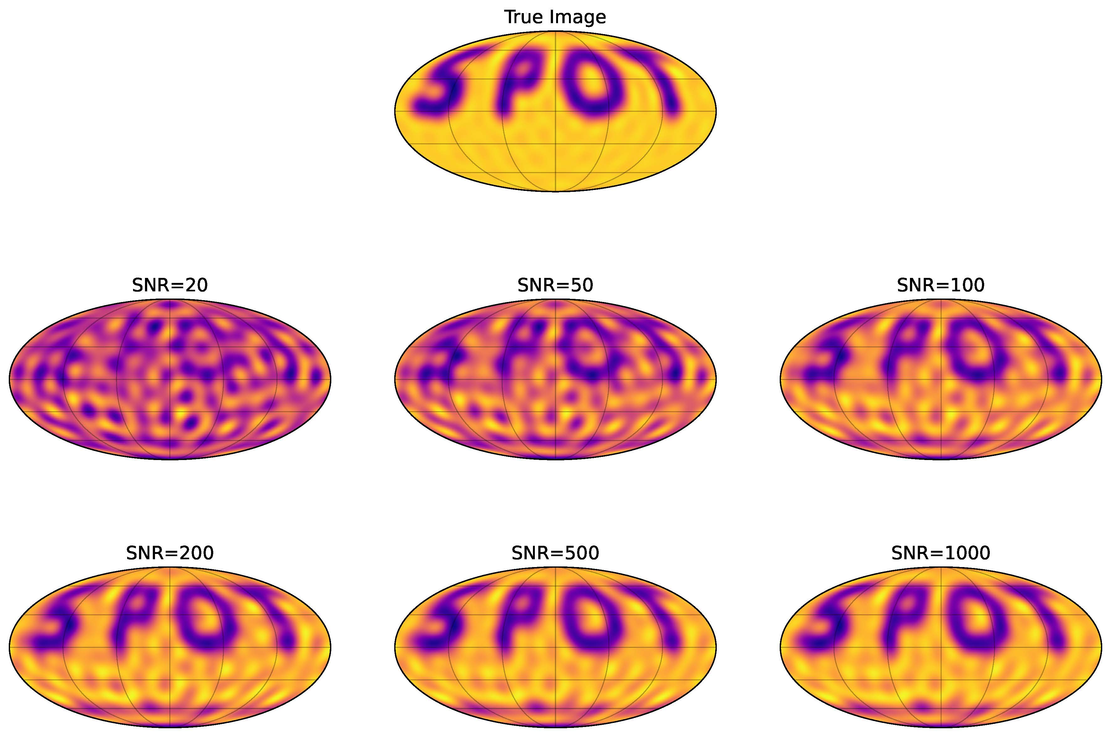 I simulate observing it with the CHARA Array and inject different levels of noise into the simulated data and optimize to find the best-fitting map. At high signal-to-noise we basically recover a perfect map!